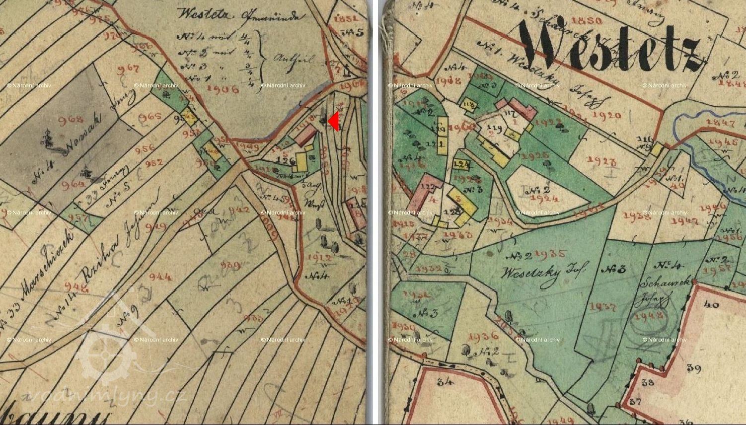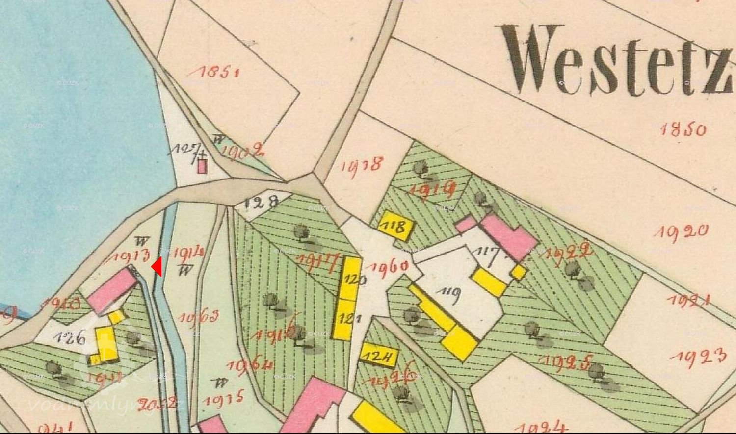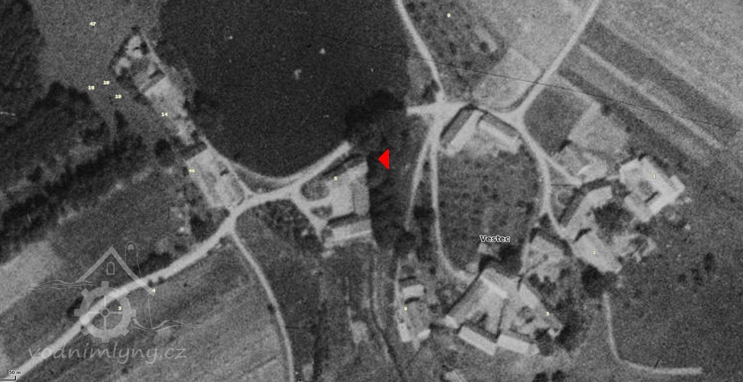 4. Mlýn ve Vestci Karla Svobody u rybníka ( 1 ha 64 a). Pohon: pouze voda svrchní. Složení: Francouzský a český kámen se dvěma stoupami. Polní hospodářství o 30 měrách.