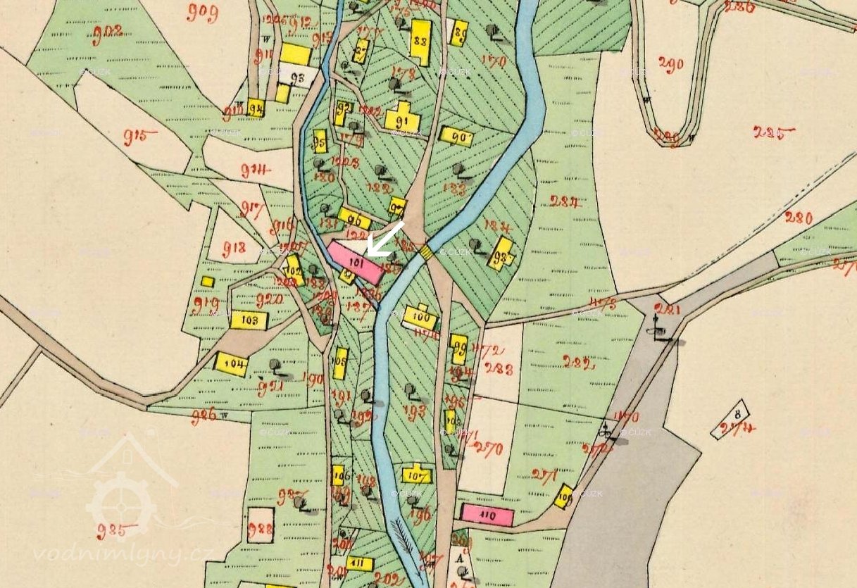 Popis1930: 1 turbína Francis, hltnost 0,5 m3/s, spád 5,6 m, výkon 18,6 HP
