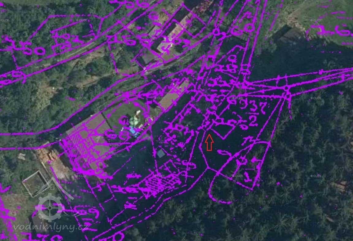 Mlýn čp. 33 jest poháněn vodou z potoka Klejnárky, (chyba, jedná se o potok Paběnický, ústící do Klejnárky v Chedrbí) která zadržována jest v rybníce č. kat. 172, který je majetkem mlynáře a má výměr 0,5158 ha.