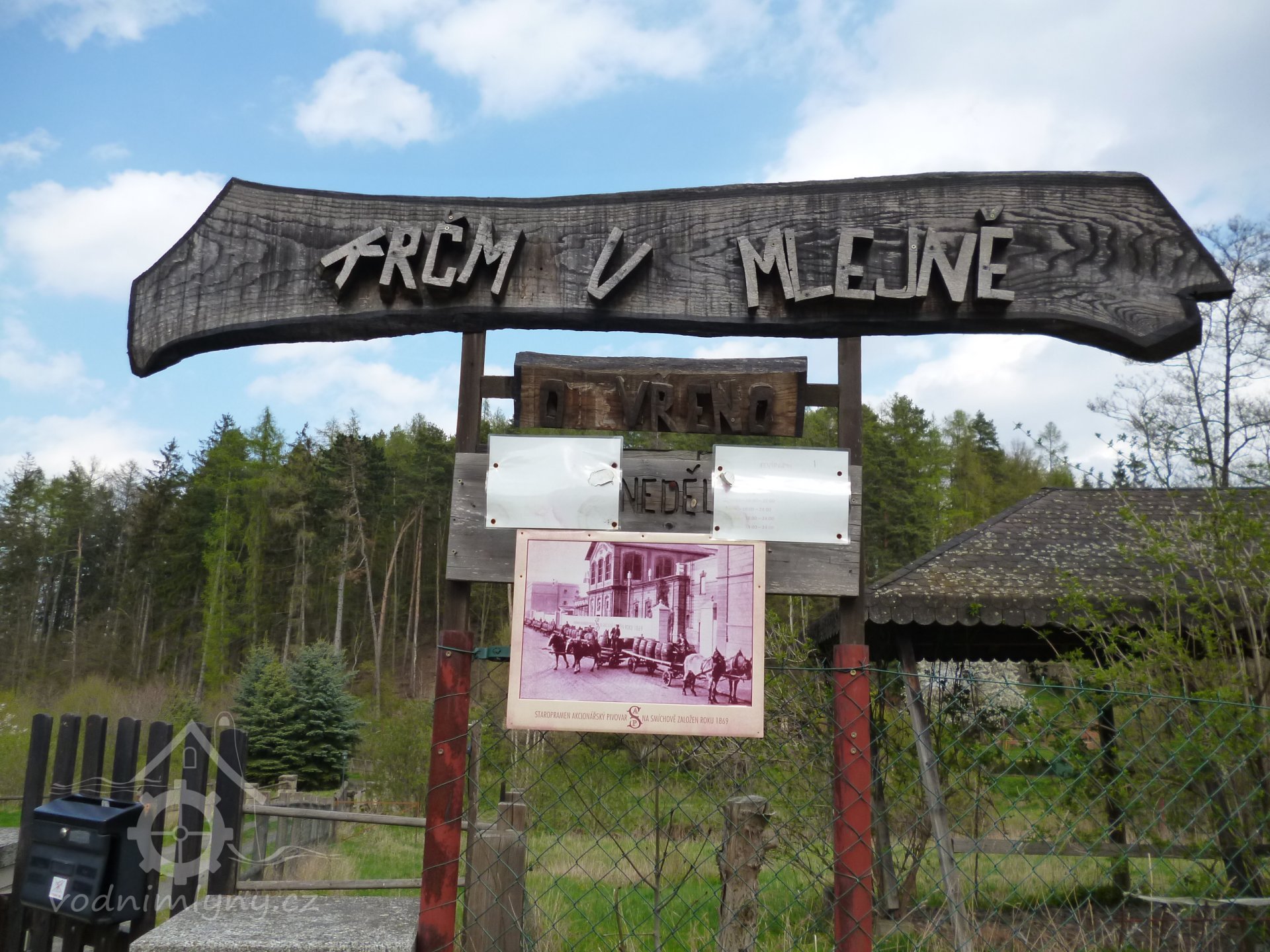 Rybník čp. 173 před mlýnem jest na suchu, velká voda v r.1888 jez rybníka při levé straně čelní hráze odplavila.