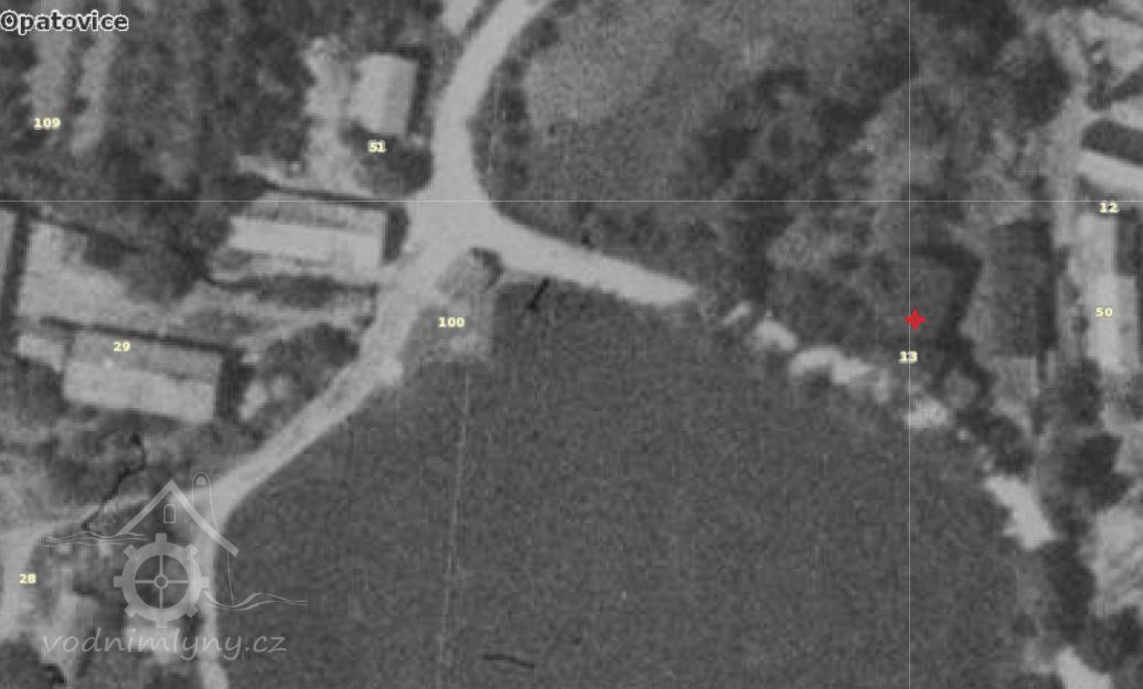 Mlýn stojí přímo pod hrází Mlýnského rybníka. Z něj tekla stavidlem vody na mlýnské kolo. Odtok od mlýna ústil do Opatovického potoka, který protéká rybníkem.