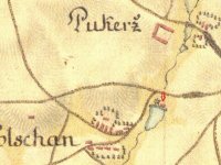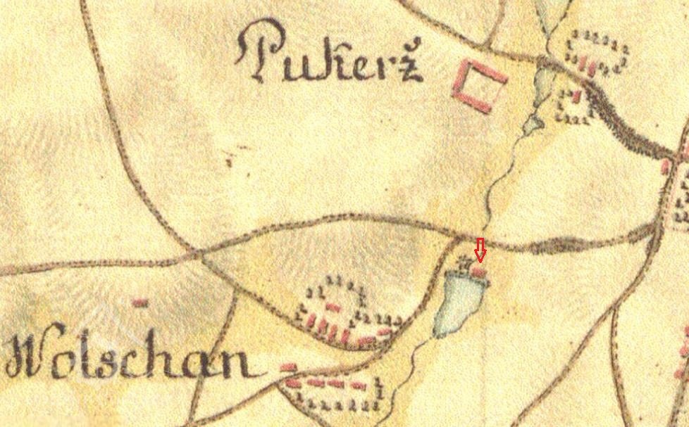 V 16. století bylo na Olšanském potoce mezi obcemi Nová Lhota a Třebešice vybudováno několik menších rybníků. U rybníka, který se nacházel mezi obcemi Olšany (dříve Wollschan, Volšany) a Pucheř (dříve Pucherz, Pukeř) stál mlýn. Rybník ani mlýn se nedochovaly, zanikly někdy 1. třetině 19. století, na mapách II. vojenského mapování ani stabilního katastru z roku 1838 již nejsou zakresleny.