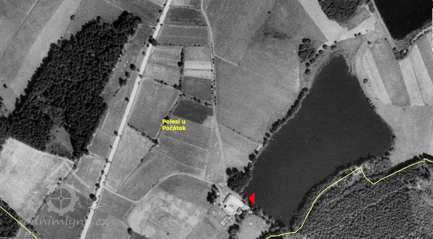 Pod vesnicí Polesí, která se ještě za 1.republiky jmenovala Rymberk, pod hrází Mlýnského rybníka (nyní rybník Chadim) stával na místě jedné z chat, které jsou okolo rybníka rozesety. Podobu stavení ukazuje letecká mapa z 50 let. V současnosti připomíná mlýn pár mlýnských kamenů, obruče z hřídele mlýnského kola a kamenné základy lednice pod jedním z objektů.