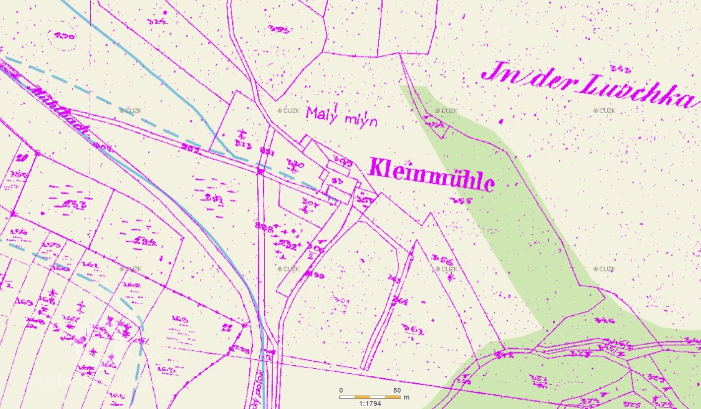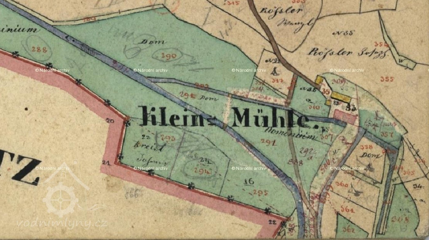 Původně mlýn roubený. Po roce 1841 postaven zděný. (RŠ)