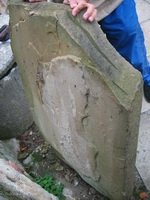 Na kameni je vyryt jetelový kříž. V dolní části je zbytek nápisu: