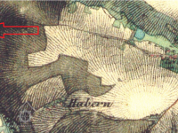 2,4 km západně od centra Nesměně, 700 m východně od centra Hryzel
