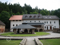 Mlýnice a hospodářské budovy uspořádány kolem velkého obdélníkového dvora.