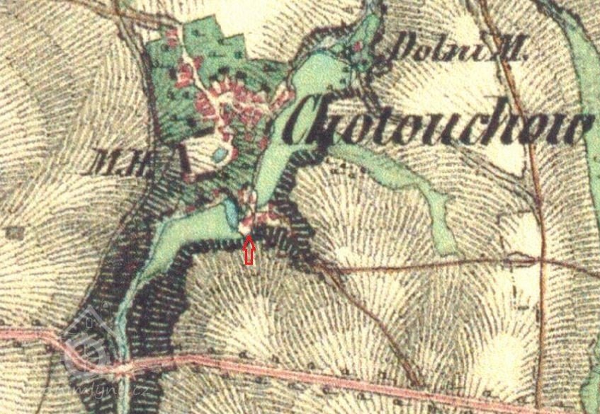 V roce 1734 je v soupise usedlých živností v obci Chotouchov uváděn „mlýn Hořžejší Jiřího Trnky“.