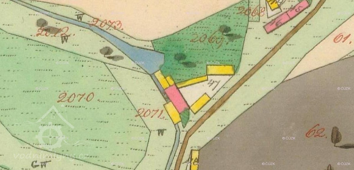 PopisV roce 1930 mělo vodní kolo hltnost 104 při spádu 6,21 m mělo výkon 5,5 HP.