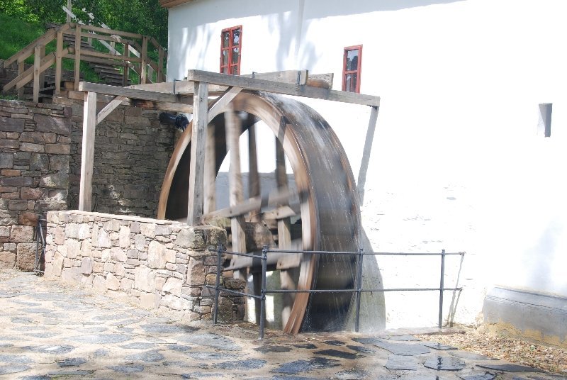 Mlýn s vodním kolem, který mele