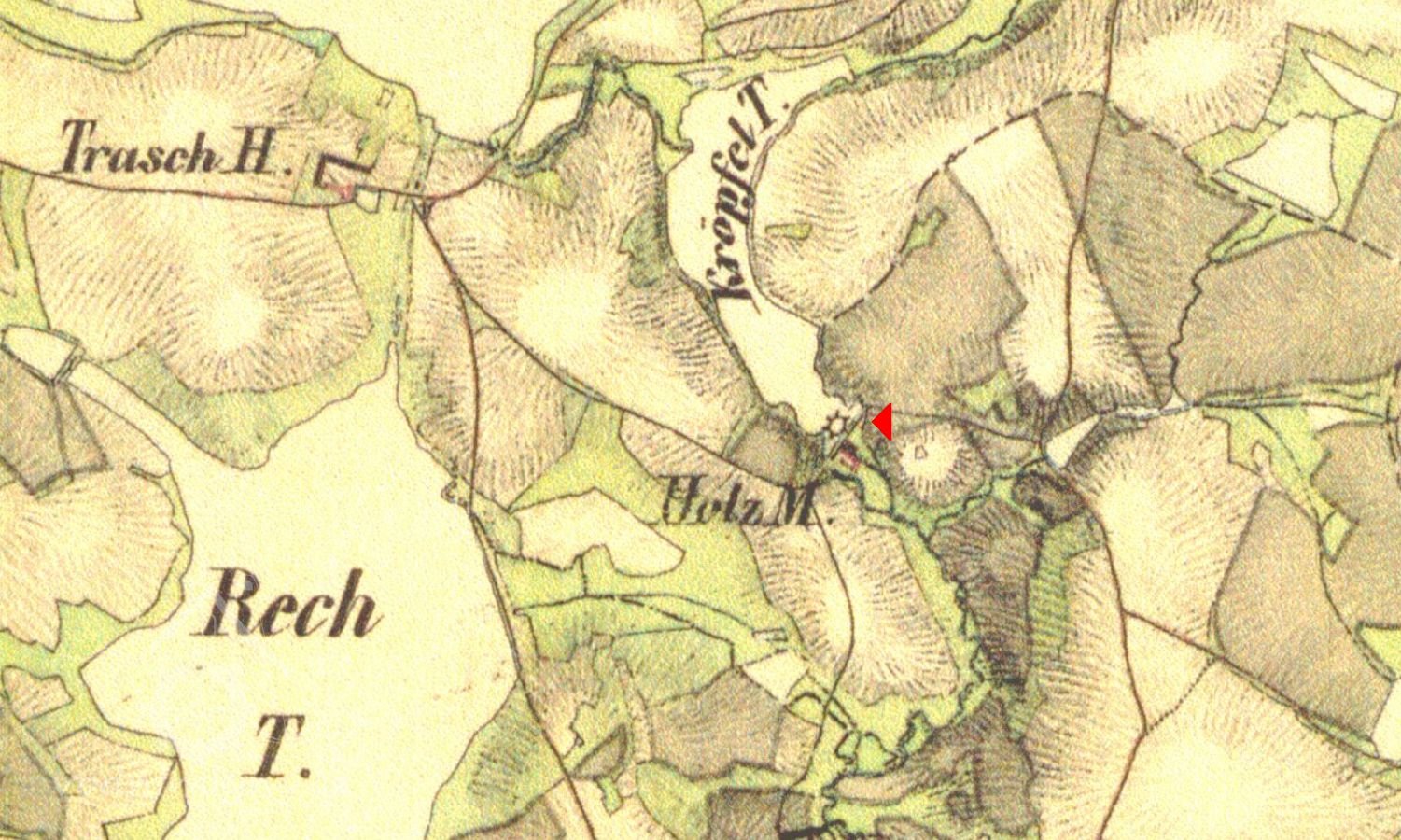 Rok 1890 – Dřevěný Mlýn (Holzmühle)