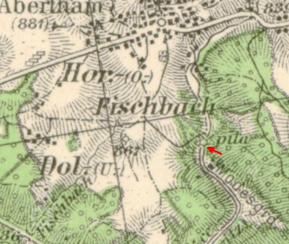 V roce 1930 byl majitelem pily Alfréd Wüst, Fischbach 16. Potok se nazýval Červená Bystřice.