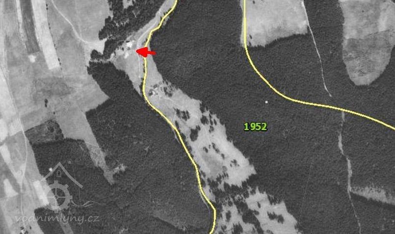 V roce 1952 budova pily stála, uvedeno na leteckém mapování z 50. let 20. století.