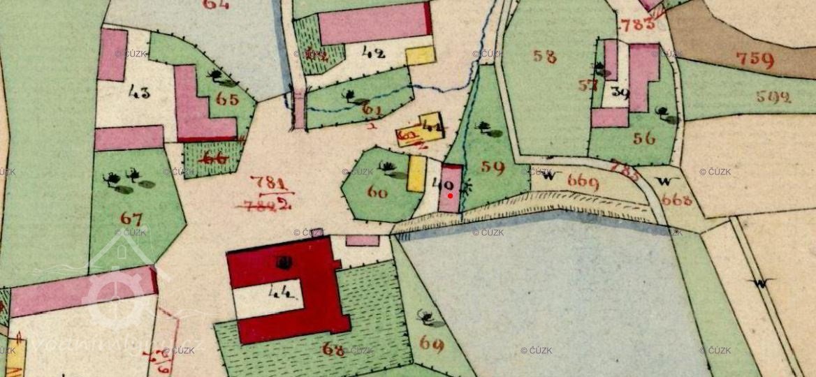 Dům č. 19. R. 1620 panský mlýnec. V zápise z r. 1700 je napsáno,že ze starého panského mlýna, v němž někdy slad se mlíval, je nyní panská chalupa, ve které zůstává řezník Bartoloměj Trubáček. Má 4,5 strychu polí a zahrádku, platí činži 45 krejcarů, úrok 1 zlatý 10 krejcarů a ve žních chodí 3 dny na daremnou robotu. R. 1759 prodala vrchnost sladovní mlýn se zahrádkou, mimo kola a mlýnské zařízení krejčímu Matěji Bečkovi za 70 zlatých. Mlít nesmí jen když mlýn na Vltavě /č .43/ (Horní Lipovský mlýn, poznámka přispěvatele) pro velikou vodu by nemlel, musil by se semlít slad a pro panskou čeládku obilí. Činži bude platit 5 zlatých. Bečka r. 1776 umřel. Vdova prodala mlýn zase vrchnosti a tato již r. 1779 prodala jej Josefu Čalounoví za 480 zlatých. Bude platit činži 4 zlaté, strych pšenice a 5 strychů žita. Ze strychů žita musí semlít věrtel vejražky, 2 věrtele chlebové mouky a věrtel otrub. Při mlýně je jedno kolo, tři stoupy a všechny stroje. Čaloun prodal mlýn Matěji Šebelovi a ten r. 1806 postoupil jej Janu Vejvodovi z Jistebnice směnou za mlýn v Pohoří o dvou kolech a třech stoupách. Vodu z rybníka musí brát tak, aby rybám neškodil, ale vrchnost může brát stále vodu pro pivovar a sádky. Vejvoda r. 1811 prodal mlýn Františku Lukášovi za 2.940 zlatých. R. 1844 nastoupil syn Josef, 1869 syn tohoto Karel, který r. 1890 prodal jej Janu Moučkoví, r. 1893 vdova Marie, r. 1898 v exekuční dražbě koupil mlýn zase Karel Lukáš. 1899 Josef Kraft, 1902 Antonín Košták, 1903 vdova Anna a r. 1906 Cecilie Šebelová. R. 1930 Anastazie Šlemrová, Marie Šmahelová a Bedřich Šebele dědili po jedné dvanáctině, František Šebele tři čtvrtiny. František Šebele umřel r. 1947. Z jeho podílu připadlo na tytéž sourozence po jedné čtvrtině.