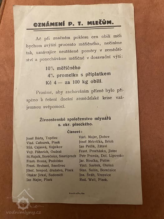 Vojtěch Pravda *12.4.1869, majitel, mlynářství/mlynář, vlastní mlýn Brloh;