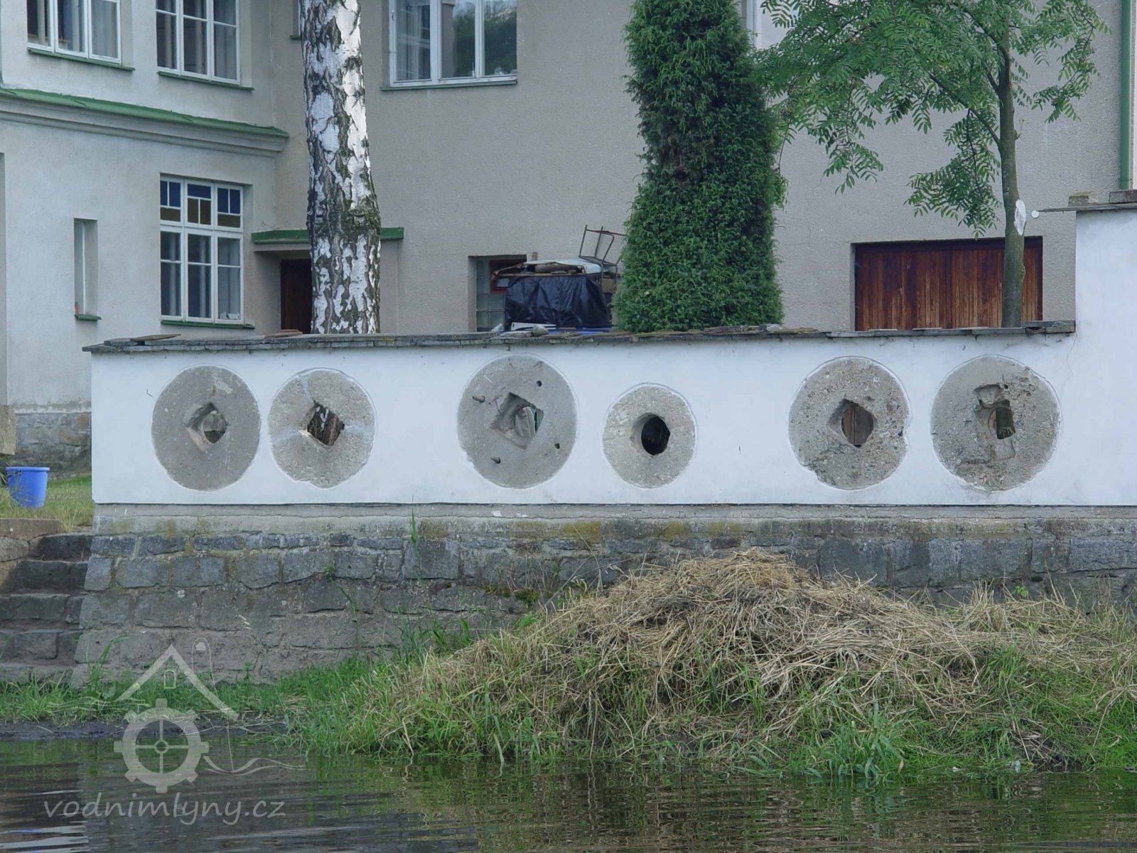 1930: 1 kolo na spodní vodu, hltnost 1,5 m3/s, spád 1,61 m, výkon 16 HP