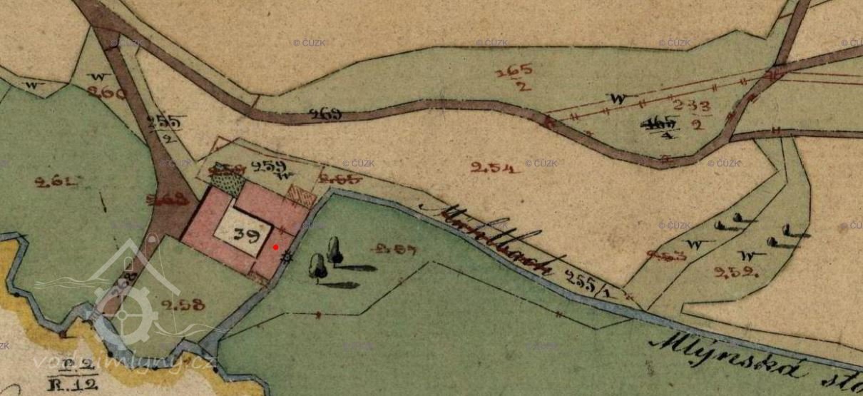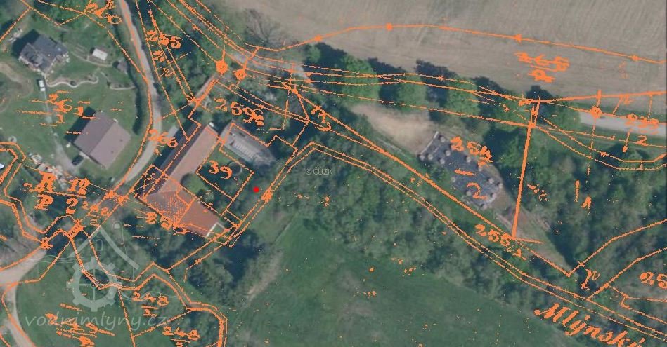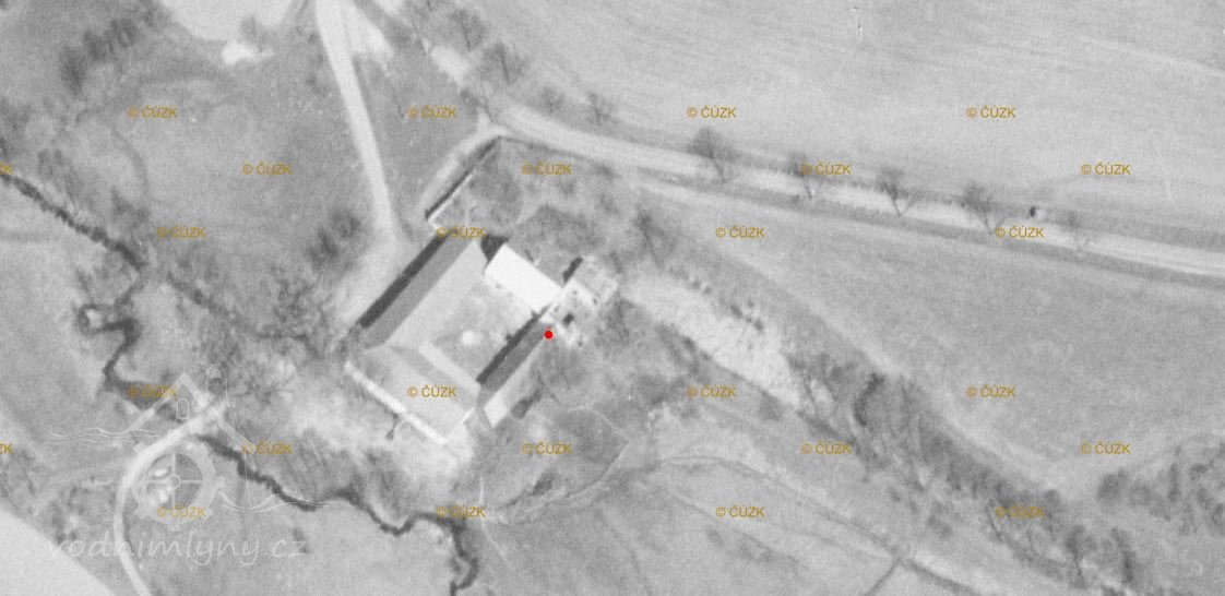Mlýnice byla někdy po roce 1953 zbořena a mlýn pravděpodně radikálně přestavěn. Mapová značka na místě bývalé mlýnice. (RŠ)