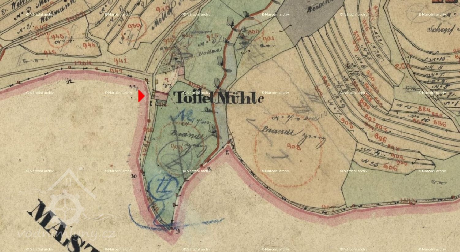 Na konci 18. století byl majitelem Toflova mlýna čp. 7 mlynářský mistr Franz Veit s manželkou Marií Annou. Po smrti Marie Anny Veit v roce 1806 získal zdejší mlýn mlynář Anton Hanika s manželkou Marií Annou. Již někdy po roce 1808 přešel Toflův mlýn čp. 7 do majetku rodiny Nowaků, k roku 1824 je zde připomínán mlynářský mistr Leopold Nowak s manželkou Katharinou. Po jeho smrti v roce 1832 získal zdejší mlýn mlynářský mistr Johann Totzauer s manželkou Annou a někdy před rokem 1840 poté mlynářský mistr Georg Brandl s manželkou Franziskou.
