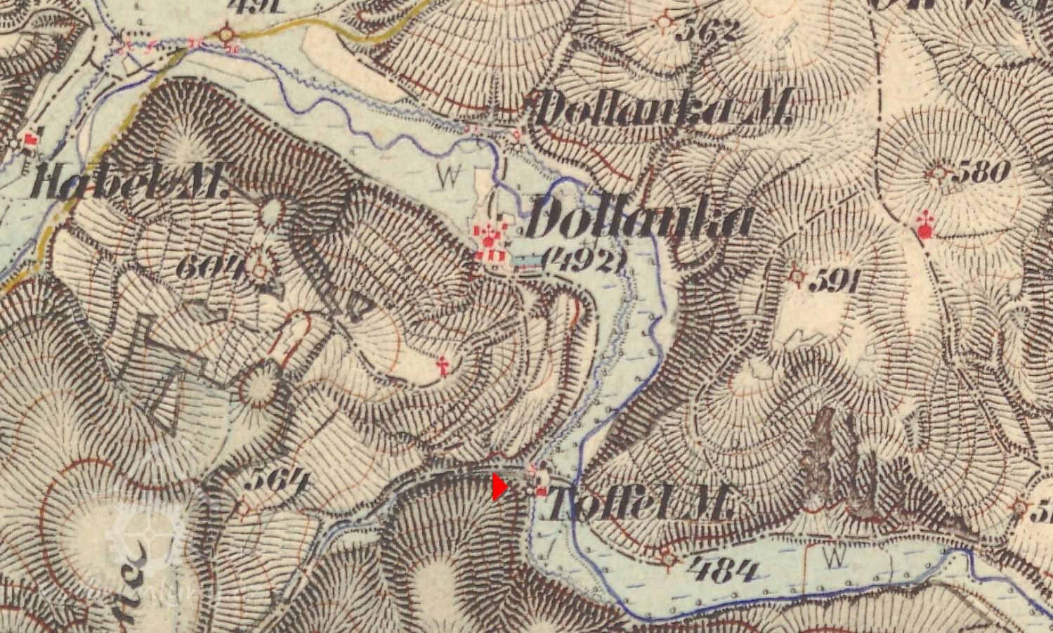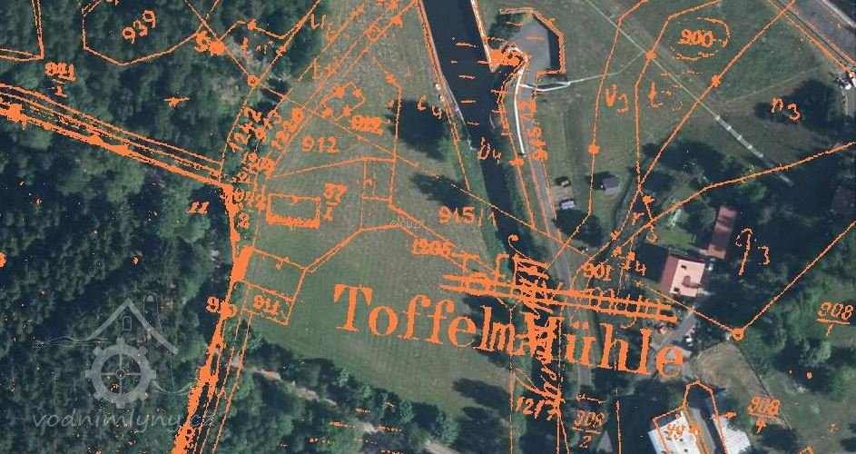 Vodní mlýn, nazývaný Toflův mlýn (Toffelmühle), byl vystavěn patrně již v 17. století podle návrhu neznámého architekta v údolí pod Černým lesem (Im Schwerzen Holz) na pravém břehu říčky Střely (Schnella Bach) asi 0,5 kilometru jižně od dnes již zcela zaniklé osady Dolánky (Dollanka). Roku 1789 byla osada Dolánky nově přifařena ke kostelu Navštívení Panny Marie ve Skokách, pouze Toflův mlýn zůstal nadále ve farním obvodu kostela Narození Panny Marie ve Štědré.