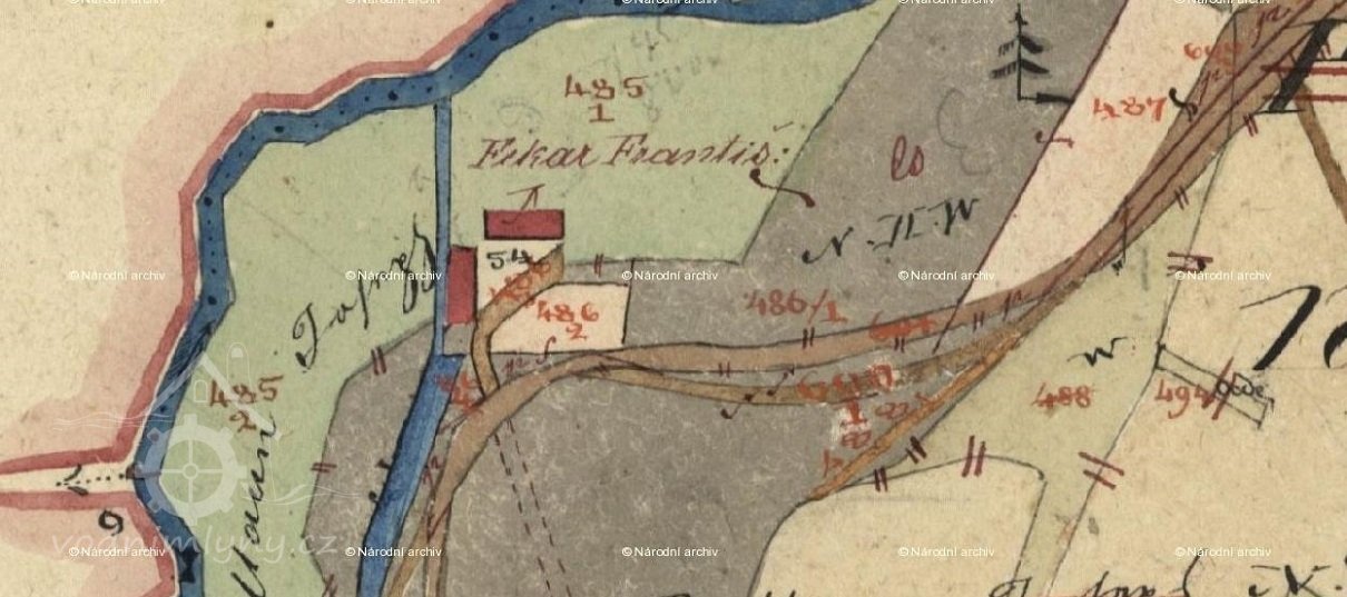 Zatím první doložený zápis pochází z roku 1868, kdy se nalezla projektová dokumentace na přestavbu vodního mlýna, který tehdy vlastnil pan Fikar. Na přelomu 19. - 20. století mlýn kupuje Václav Voplakal a této rodině se daří mlýn vlastnit cca 110 let.