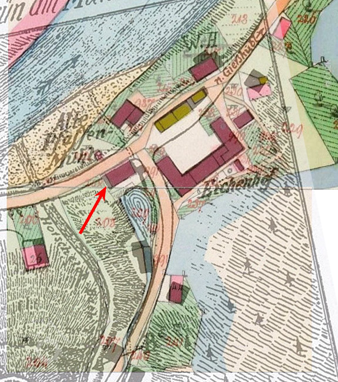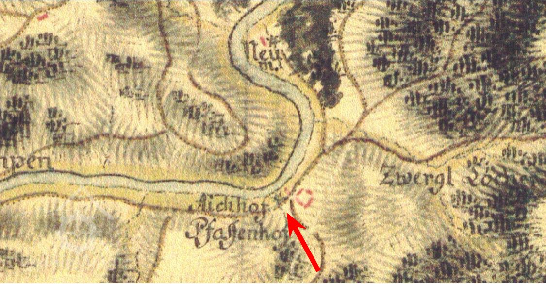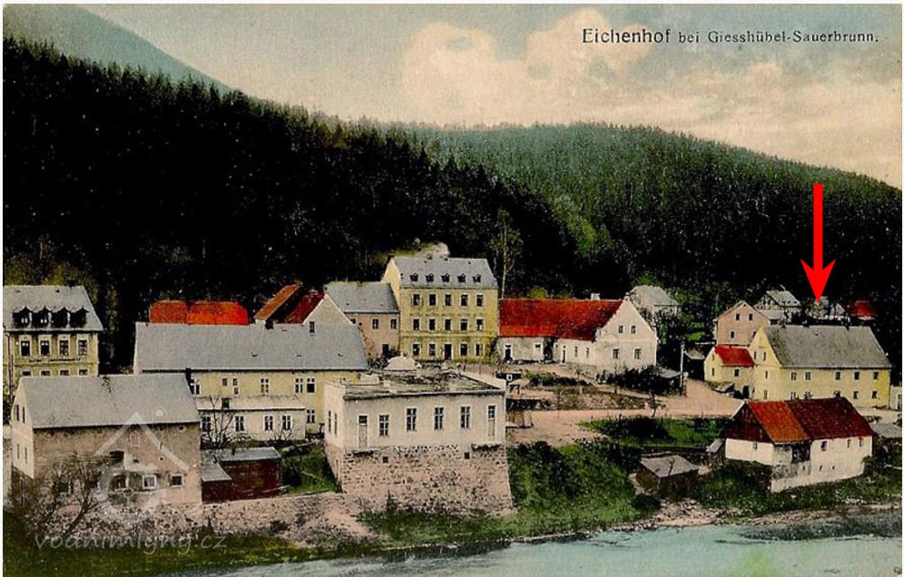 Na mapách II. a III. vojenského mapování je osada uváděna pod názvem Eichenhof. V matričních knihách pro obec Svatobor v letech 1660 – 1784 je uváděna také lokalita: Eichenmühle = bývalý mlýn u obce Šemnice.