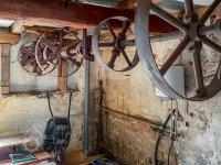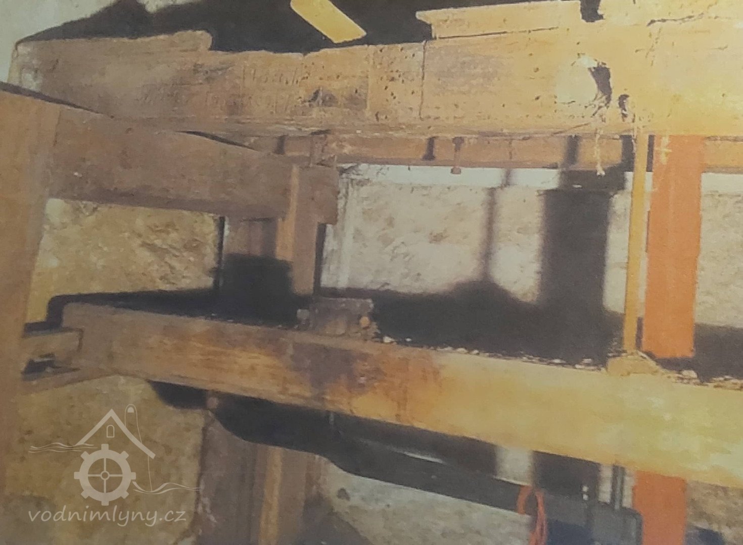 Na jedné hřídeli vodního kola umístěna dvě paleční kola, jedno pro mlecí složení, druhé pro pilu.