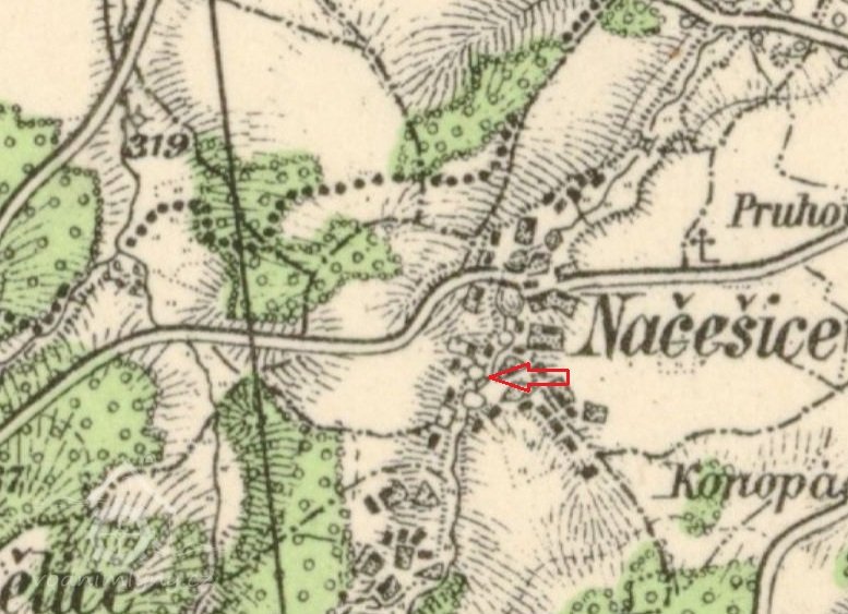 Mlýn stál uprostřed obce Načešice, na levé straně Jeníkovického potoka, asi 50 m západně od dnešního obecního úřadu.
