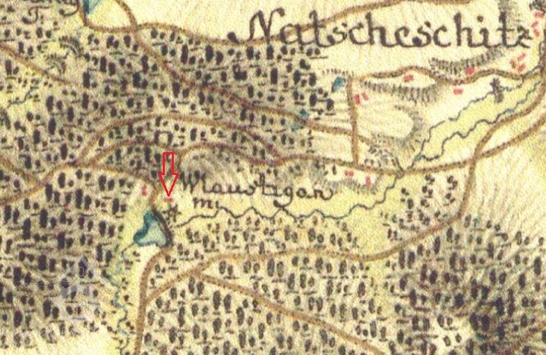 Mlýn je vyobrazen na I. vojenském mapování z let 1764-1768.