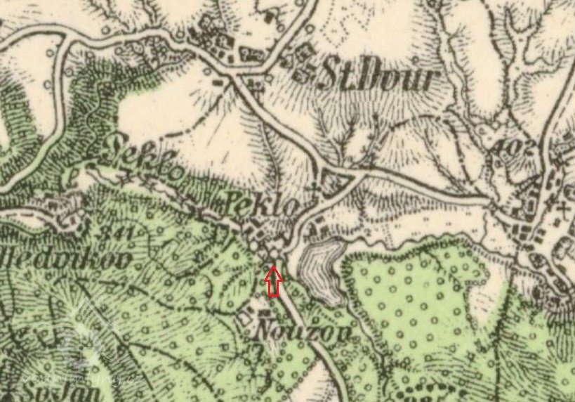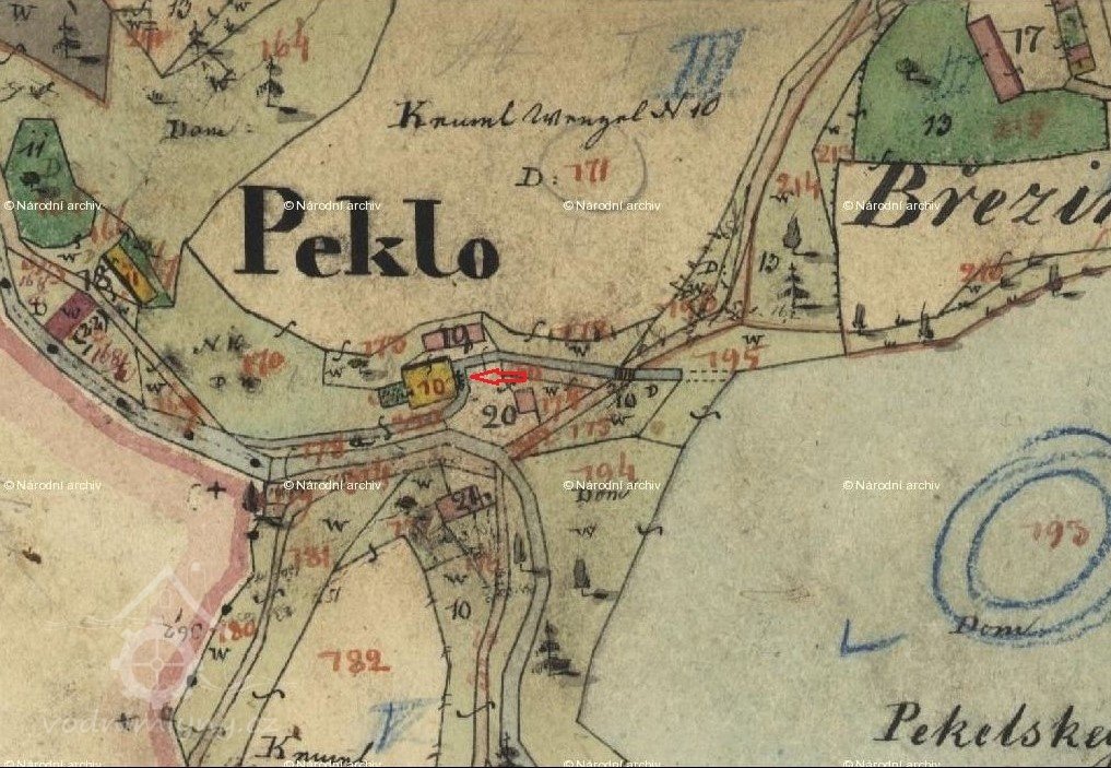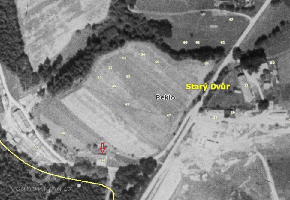 Mlýn stál v osadě Peklo spadající pod obec Starý Dvůr, na pravém břehu Zlatého potoka, 80 m západně od hráze rybníka Dolní Peklo.