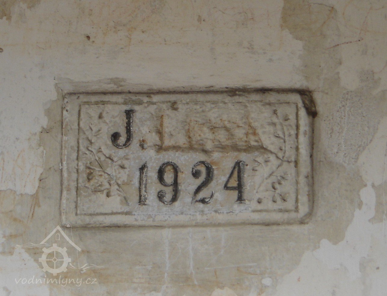 Rok přestavby mlýna - J. Lesk 1924, 18. 3. 2014, © Radomír Roup, (Prvky na obrázku: epigrafické památky (nápisy, datování aj.))