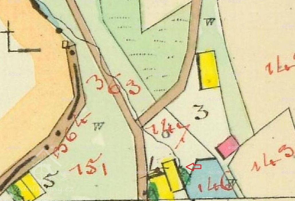 Popis1930: 1 kolo na svrchní vodu, hltnost 0,075 m3/s, spád 3,1 m, výkon 3 HP