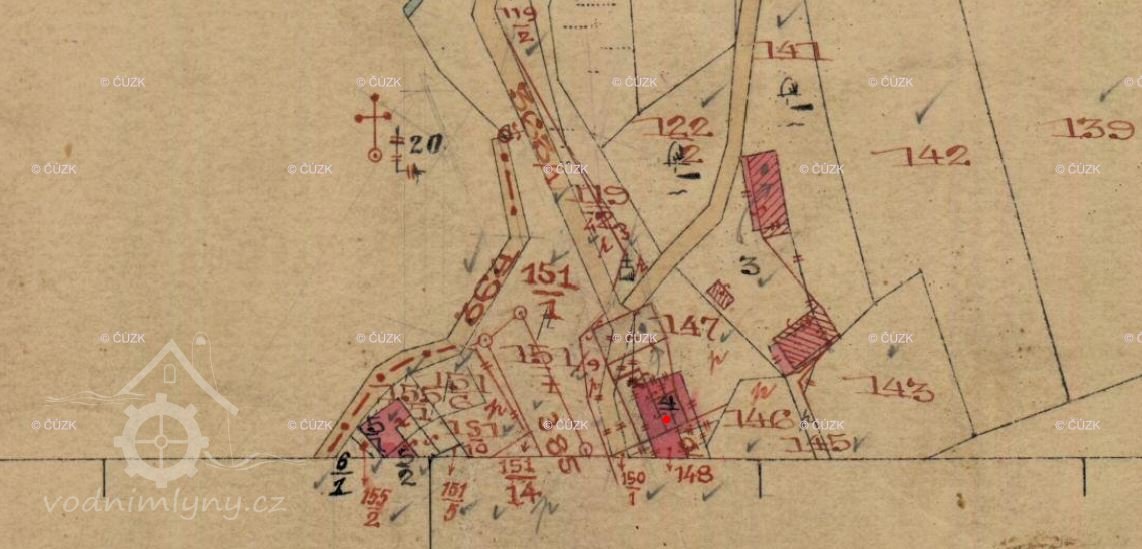 Vodní kniha 1877 uvádí mlýn na bezejmenném potoce s jedním obyčejným složením, pohon kolo na vrchní vodu o výkonu 3 HP.