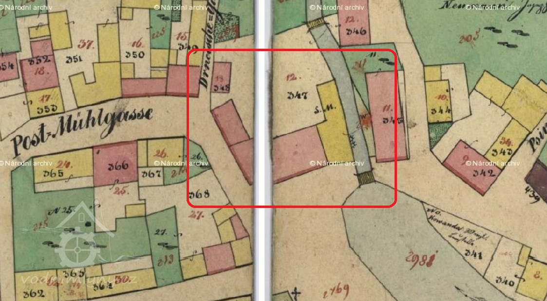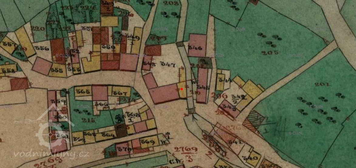 1651 Soupis poddaných podle víry - mlýn na předměstí Na kameni: mlynář Jakub Třeštík (35 let), manželka Kateřina (50), oba katolíci