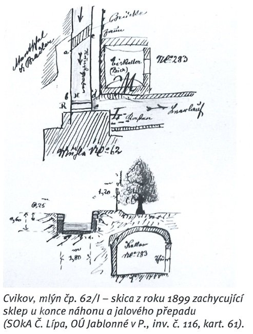 1909 dřevěné koryto vantrok nahrazeno betonovým korytem v délce 5 m před lednicí.