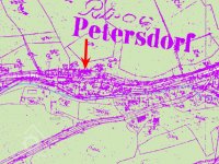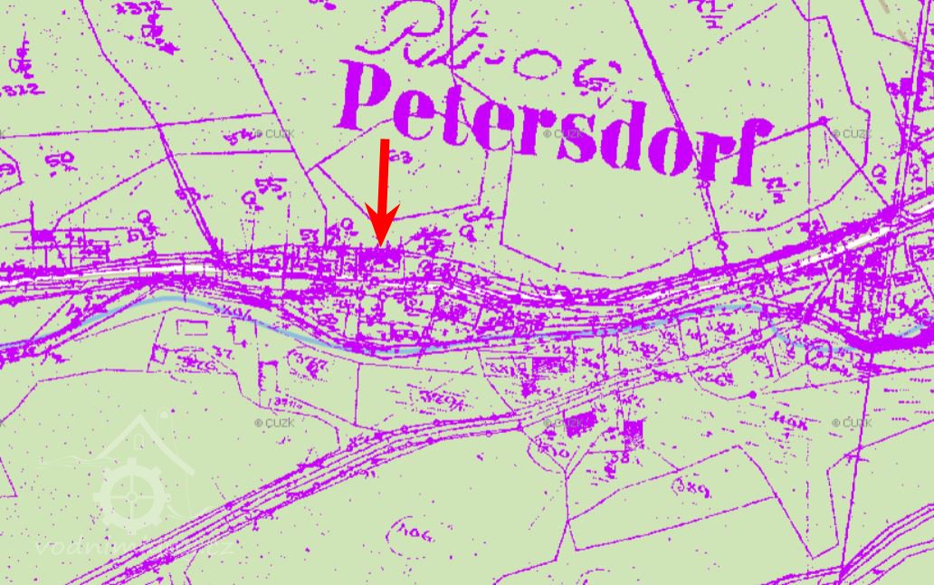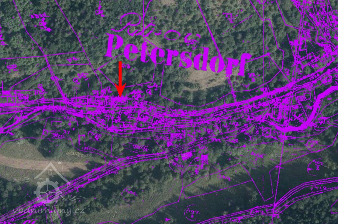 Zaniklý mlýn se nacházel v dnes již zaniklé obci Petrov (Petersdorf) na území Vojenského újezdu Hradiště.