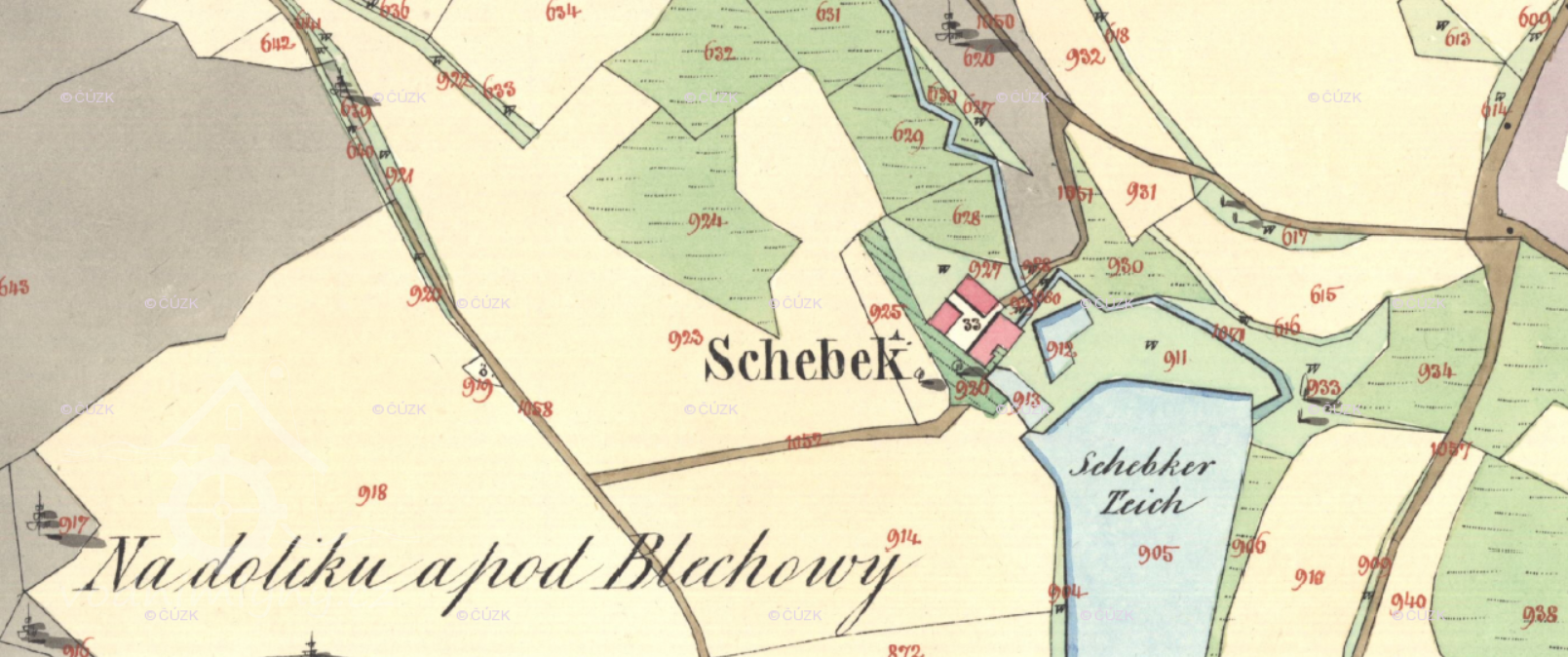 Na samotě U Šebkova rybníka, kterým protéká Vlkonický potok, ve Strážovicích se nalézá mlýnské stavení s číslem popisným 22. Mlýn eviduje i Sommer, ovšem pod mírně zkomoleným jménem Schobek. Vodní kniha udává jako dřívějšího majitele mlýna a rybníka Jana Jonáše, poté Františka a Josefu Kramperovi. K ocejchování vodního díla došlo 13. září 1883. Nástupcem Františka Krampery se stal Antonín Krampera, který 28. února 1913 získal od okresního hejtmanství v Benešově živnostenský list. František Krampera zemřel asi roku 1920.