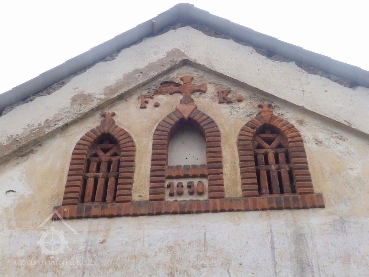 Ve štítě stodoly plastický nápis 1890 F.K. (František Krampera ?) - datum novostavby či přestavby