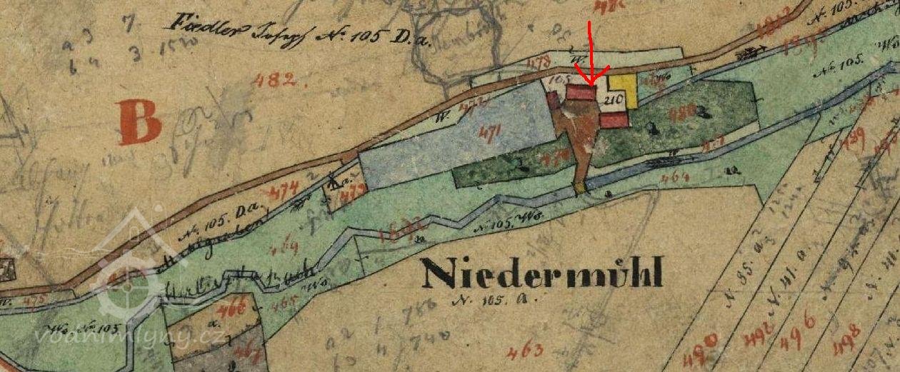 V r. 1705 byl majitelem mlýna Jan Schnürch. Roku 1723 se pak na Dolním mlýně o jednom složení zmiňuje Veronika Schnürchová, pravděpod. vdova po Janu Schnürchovi, která dne 5. listopadu 1725 prodala mlýn se vším příslušenstvím svému zeti Michaelu Gebauerovi za 400 tolarů slezských. Ten Dolní mlýn o dvou složeních pak prodal 13. září 1753 svému synu Františkovi za 500 tolarů sl. Už za 12 let 19. července 1765 pronajal Dolní mlýn František Gebauer svému švagru Karlu Josefu Bartschovi z Leskovce nad Moravicí. Dne 1. července 1781 získal laudemiální Dolní mlýn ve Velkých Heralticích čp. 105 po svém zemřelém otci Františku Gebauerovi jeho syn Ignác Gebauer. Když Ignác Gebauer zemřel, prodali poručníci 30. října 1799 Dolní mlýn Antonínu Spandelovi na 16 let za 1 000 zlatých rýnských. Po uplynut í16 let měl tento mlýn převzít jeho nevlastní syn Josef Gebauer. Protože ale Josef Gebauer před uplynutím této doby zemřel, prodal Antonín Spandel Dolní mlýn Josefu Fiedlerovi z Držkovic za 2 000 zlatých v.m. Dne 12. ledna 1841 prodal Josef Fiedler Dolní mlýn svému synu Ignáci Fiedlerovi a jeho manželce Terezii roz. Marxové za 1 900 zlatých k.m.