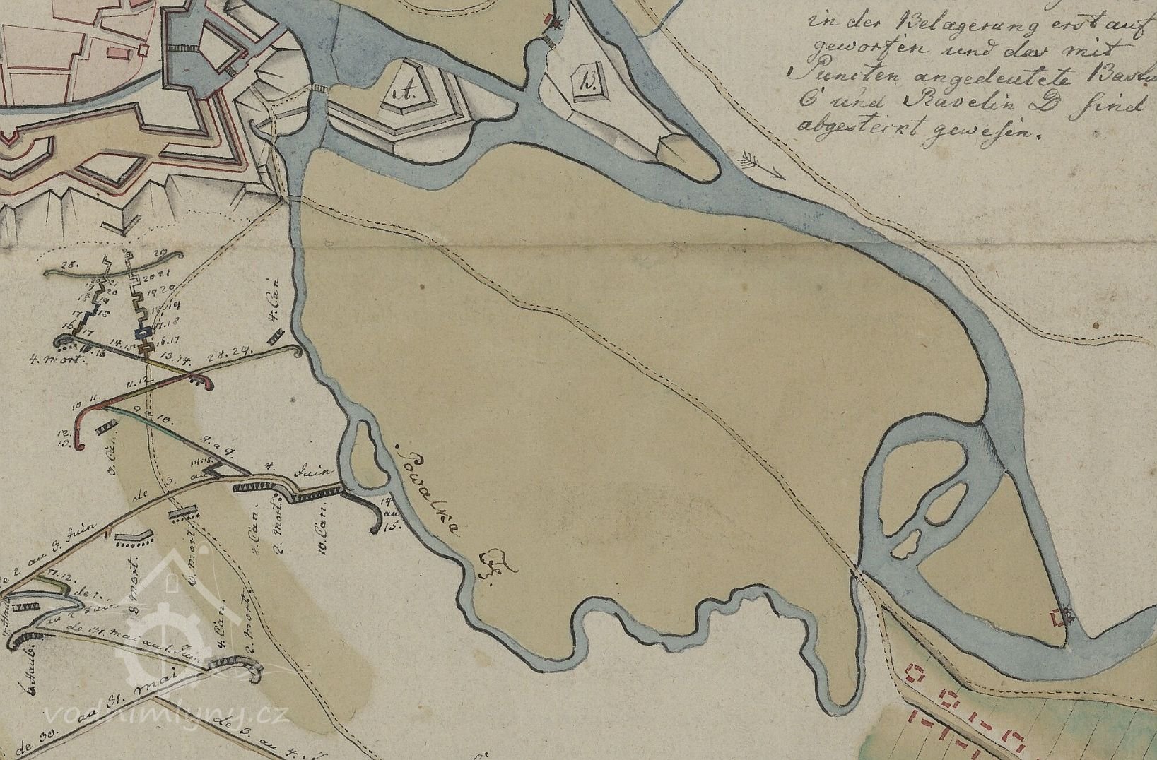 Od Neředína směrem k městu tekl v minulosti potok zvaný Povelka. Ve 13. století, kdy výstavba města pokračovala směrem k Hornímu náměstí, byl potok sveden u Litovelské brány do uměle vytvořeného řečiště (mlýnské strouhy), zvané Malá Morava na dnešní třídě Svobody. U Nového mlýna pak byl opět vyveden do řečiště, vedoucího po hranicích katastru Povlu a Nových Sadů. To je ještě dodnes patrné v ulici Josefa Mišáka, která se dříve jmenovala Na Povelce.