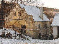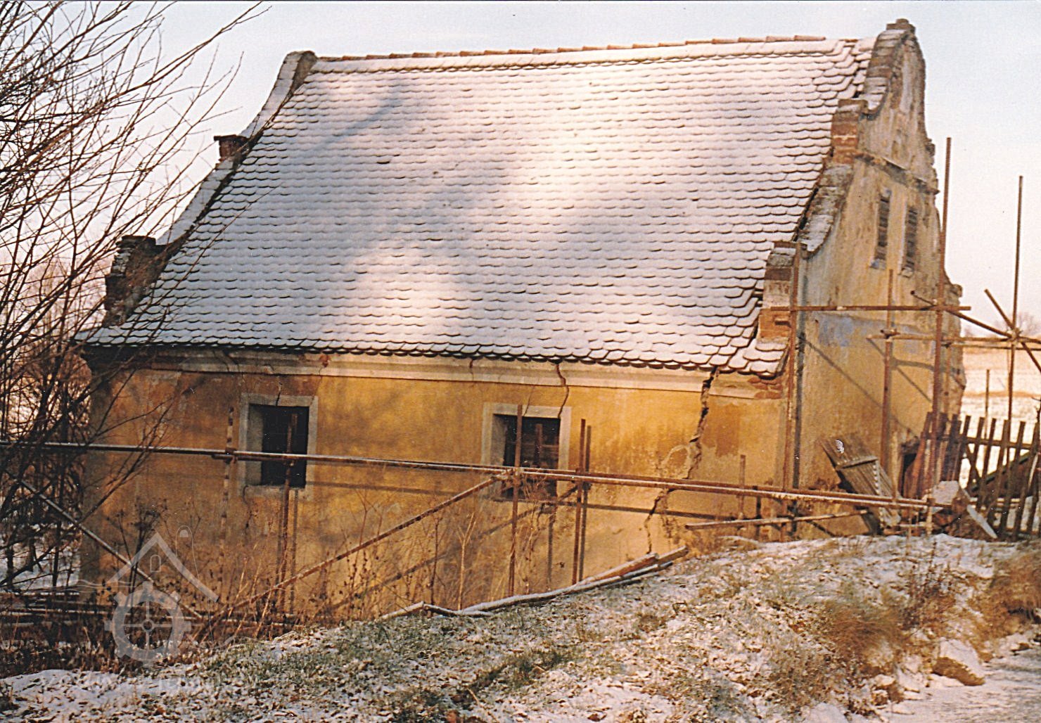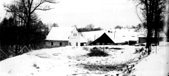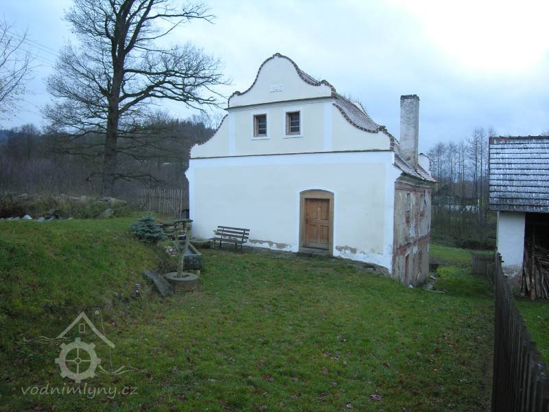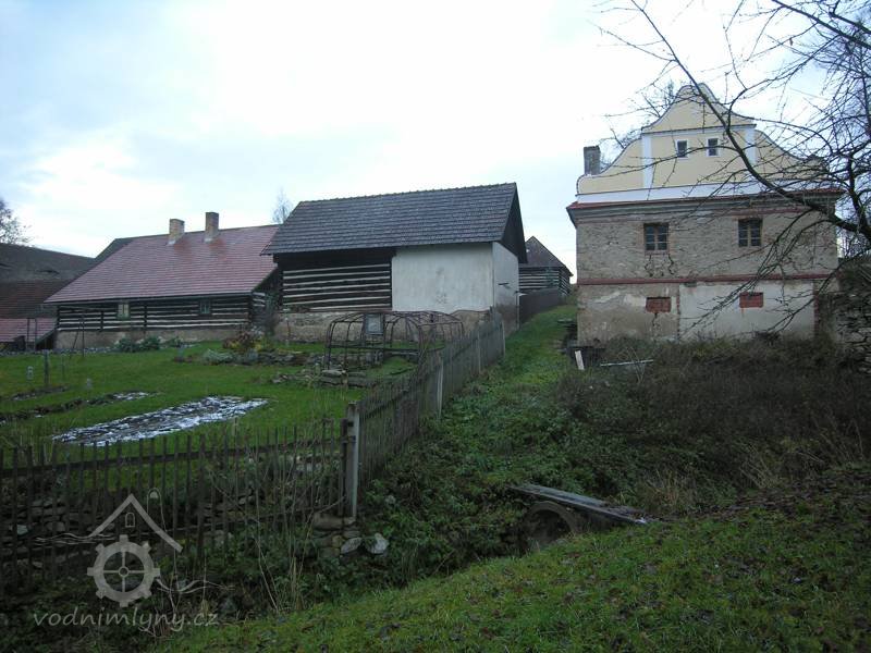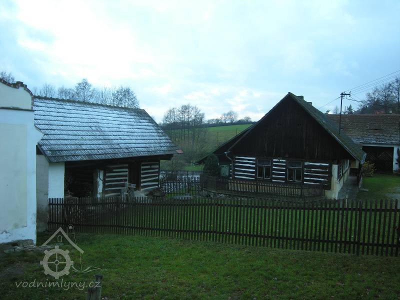 U mlýna roubené obytná budova, 2 špýchary a stodola.