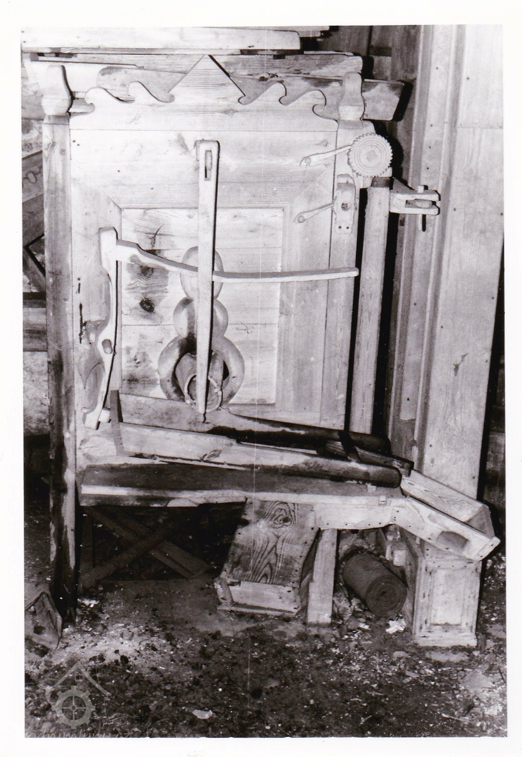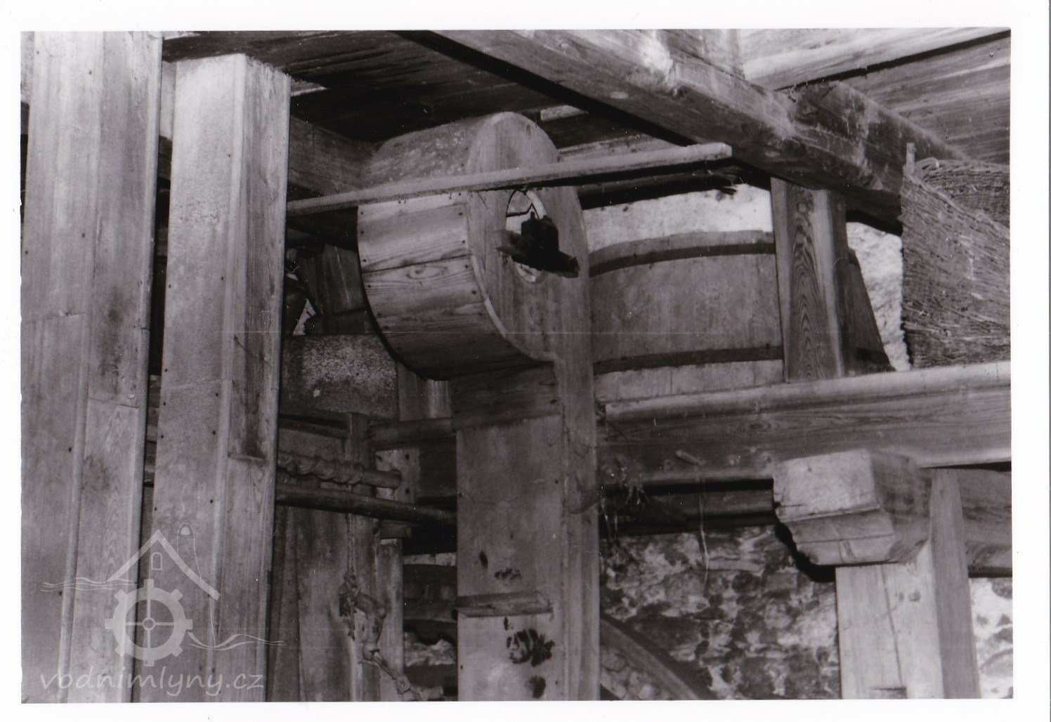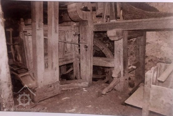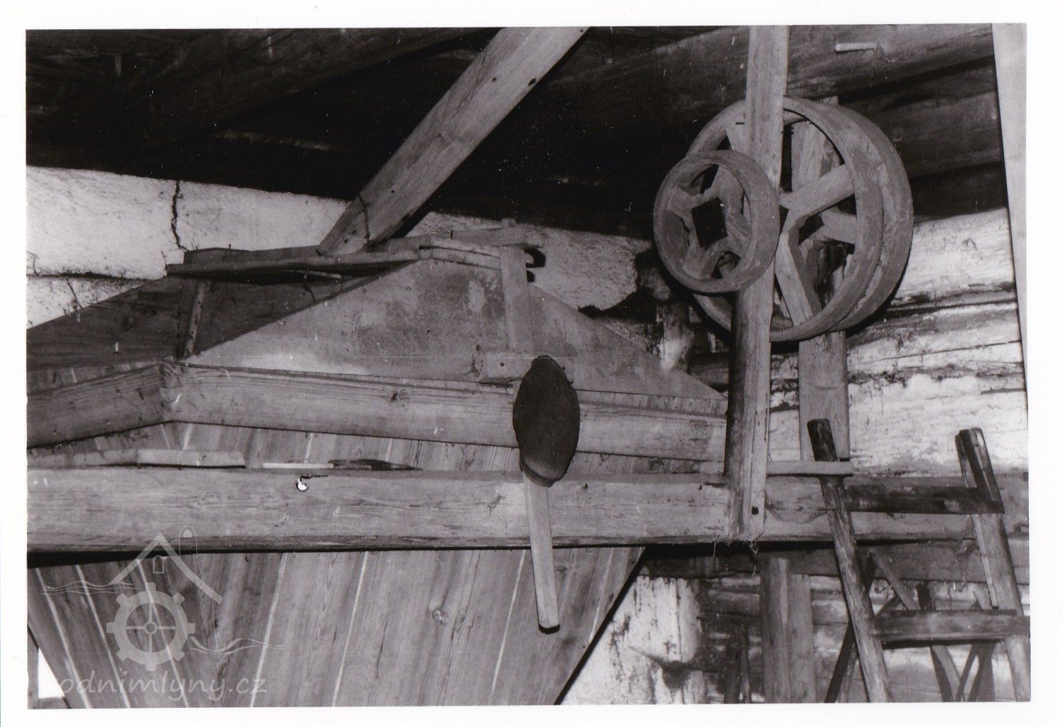 Původní staročeské složení - na zanášce násypka, pod ní lub s mlýnskými kameny, v přízemí pod ním moučná truhla.