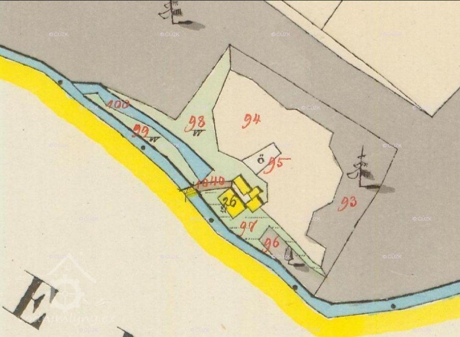 Na skice z r. 1841 je uveden majitel mlýna Franz Staffa.