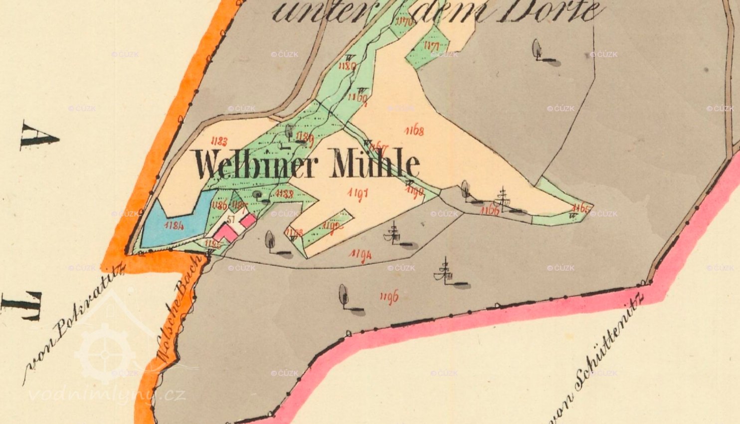 1764 - 1768 mlýn vyznačen na I. vojensekém mapování.