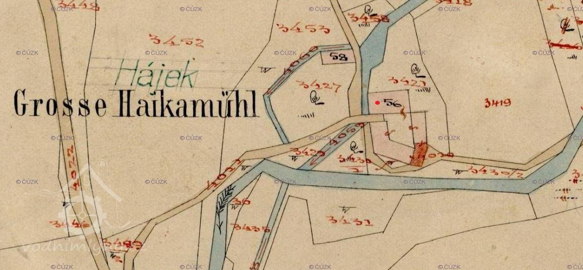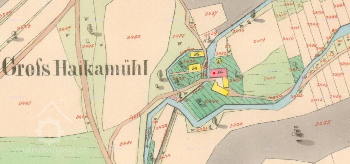 Další zmínka pochází z r. 1676, kdy Hájkovský mlýn na den sv. Jiří /23. dubna/ koupil se všelijakým náčiním, s vodní pilou i s rolemi od kláštera augustiniánů kanovníků ve Fulneku Matěj Hünel.