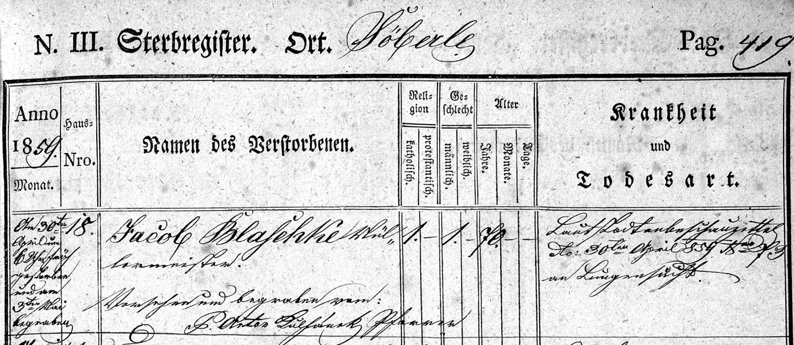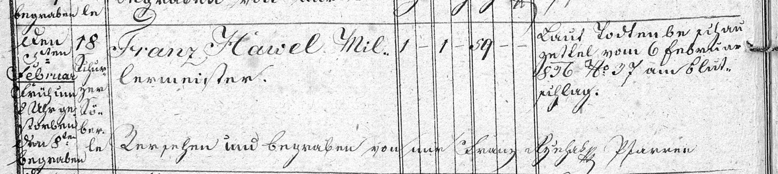19. 9. 1848 zemřela Anna, manželka mlynáře Fr. Hawla ve věku 70 let.