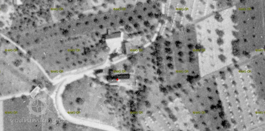 Chalupa čp. 7 je ještě viditelná na leteckém snímku z 50. let dvacátého století.