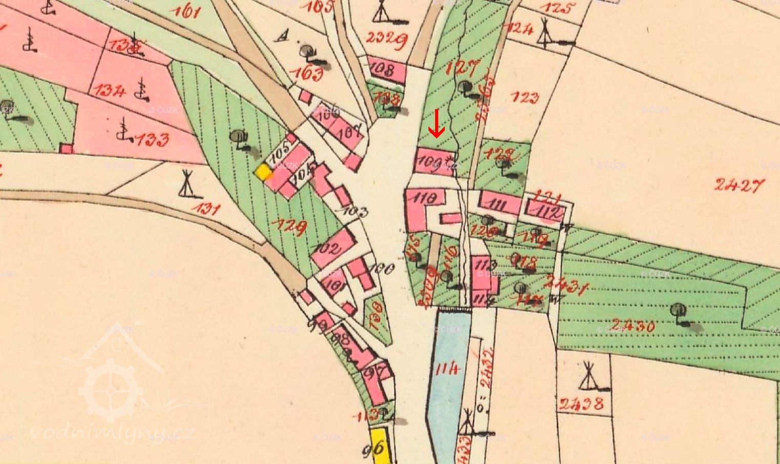 V minulosti mlýn poháněný vodním kolem pravděpodobně na vrchní vodu.