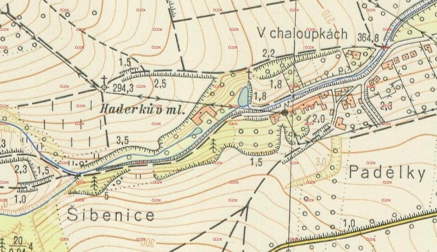 Druhou část hospodářské usedlosti mlýna (výměnek, stodola,pole,rybník, zahrady) vlastnili manželé František (narozen v roce 1888) a Otilie (narozena Vyhnálkova v Sobáčově v roce 1866) Haderkovi do roku 1965 kdy pan František Haderka dne 6.8.1965 zemřel. Na základě jeho závěti se poloviny těchto nemovitostí stává majitelem jeho syn František Haderka (nar. 20.12.1921). Jednu polovinu tedy vlastnila Otilie Haderková (nar. 6.10.1893), druhou její syn František Haderka (nar. 20.12.1921).