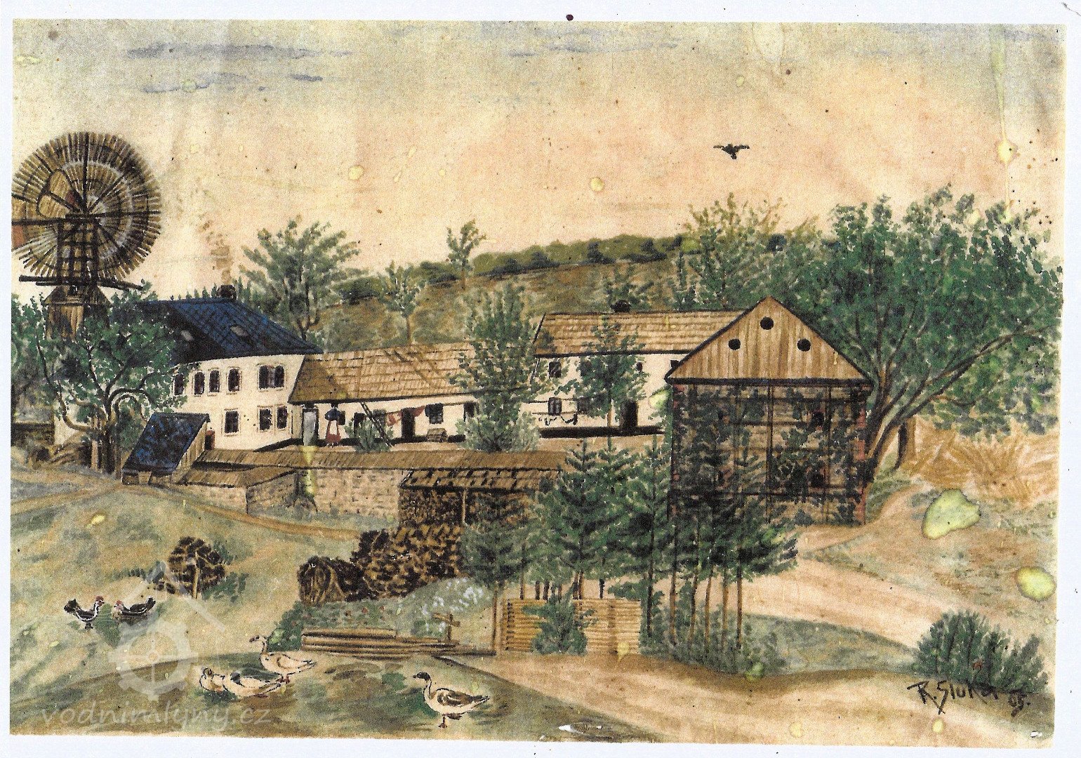 Součástí vodního mlýna byl i velký dřevěný větrný mlýn, který na začátku 20. století zničil blesk.