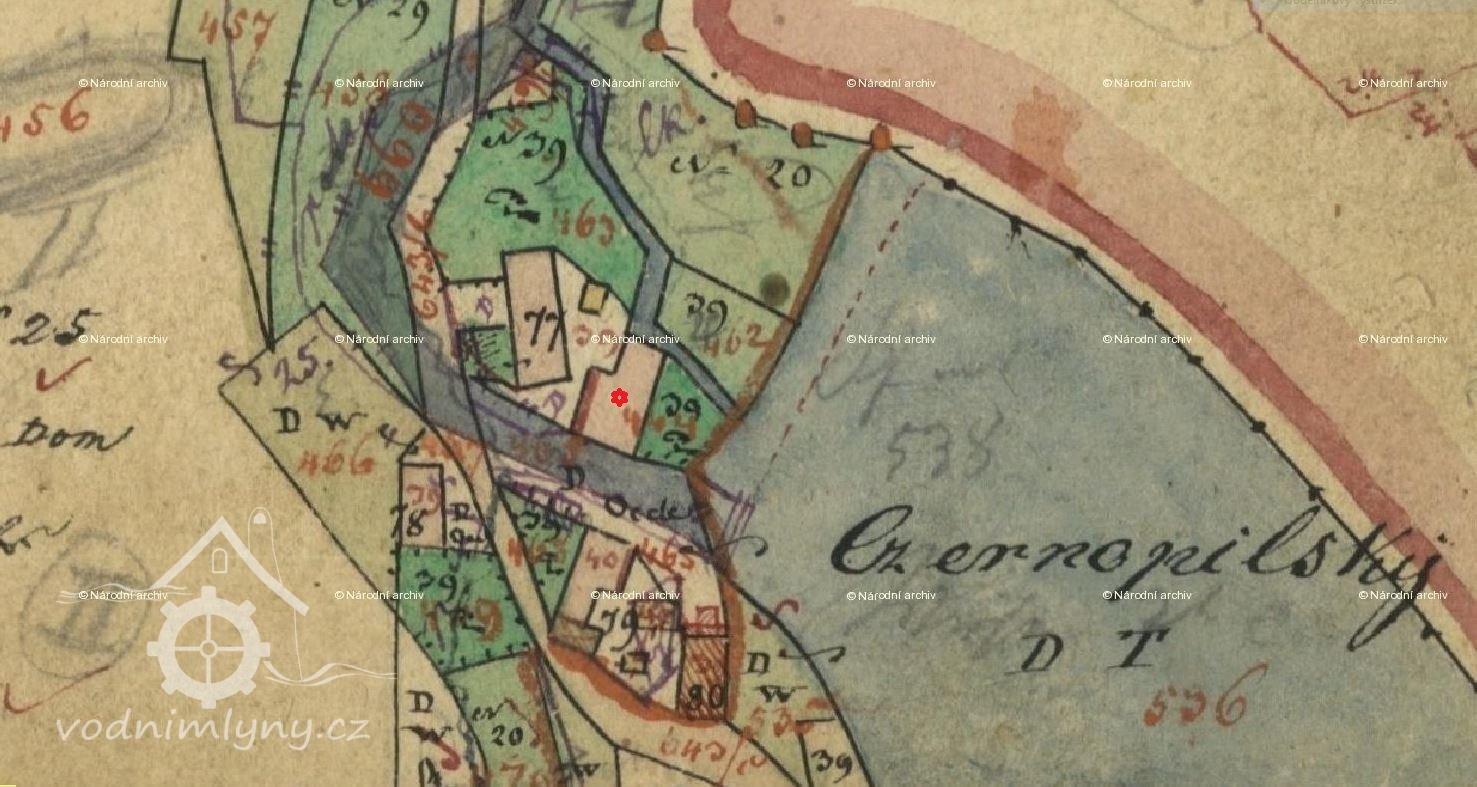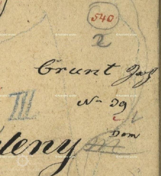 1839 - mlynář Josef Grunt, č. mlýna 39, uvedeno na indikační skice